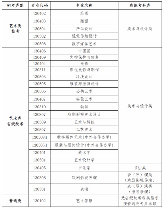 按教育部相關(guān)要求,報(bào)考我校藝術(shù)類專業(yè)的考生須按我校各專業(yè)與省級統(tǒng)考科類對應(yīng)要求參加相應(yīng)省級統(tǒng)考,我校2026年各專業(yè)招考類別和省級統(tǒng)考科類對應(yīng)要求如下:
