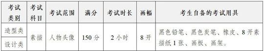 考試用具要求:①鉛筆和炭筆不得使用黑色以外的其他顏色;②8開(kāi)素描紙要求:180克,漂白色、細(xì)紋,尺寸27CMX39CM,不得有顏色,不得出現(xiàn)暗紋、邊框、界格、品牌標(biāo)印、折痕等標(biāo)記,長(zhǎng)寬尺寸誤差不得大于1厘米;③畫(huà)板、畫(huà)架須干凈整潔,無(wú)任何圖文;④考生不得使用規(guī)定以外的考試用具。