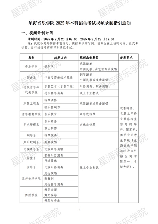 星海音樂學(xué)院2025年本科招生考試視頻錄制指引通知