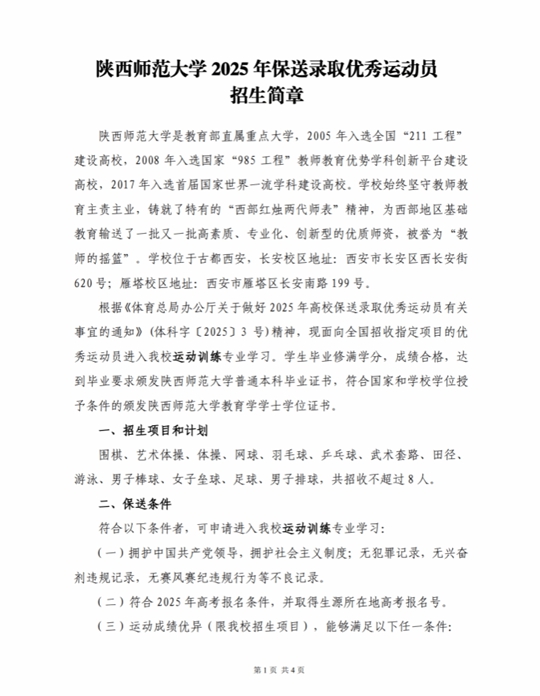 | 陜西師范大學(xué)2025年保送錄取優(yōu)秀運(yùn)動(dòng)員招生簡(jiǎn)章 |