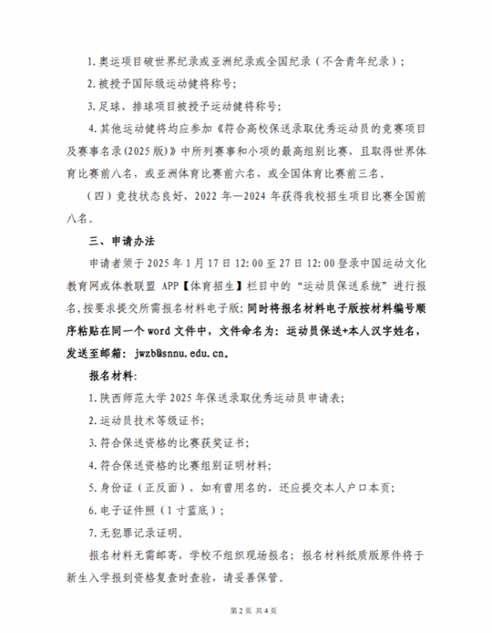 附件:陜西師范大學(xué)2025年保送錄取優(yōu)秀運(yùn)動(dòng)員申請(qǐng)表.pdf 點(diǎn)擊查看