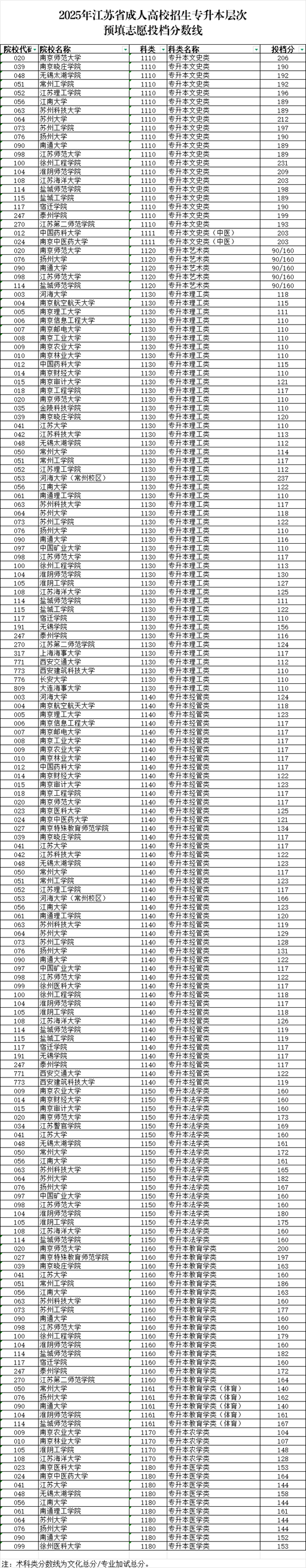 | 2025年江蘇省成人高校招生專升本層次預(yù)填志愿投檔分?jǐn)?shù)線 |