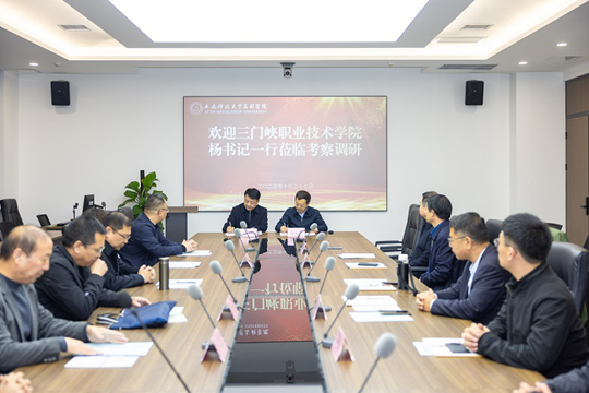 2025年10月27日,三門峽職業(yè)技術(shù)學(xué)院黨委書記楊彤率隊,副院長彭博、黨委委員兼副院長員瑩、院長助理李啟松等領(lǐng)導(dǎo)一行赴西安科技大學(xué)高新學(xué)院開展考察調(diào)研活動。西安科技大學(xué)高新學(xué)院董事長孫龍杰、副院長王福豹、王國良,院長助理胡秋實、辦公室主任王智榮等領(lǐng)導(dǎo),及陜西航天意德高科技產(chǎn)業(yè)有限公司、西安西科節(jié)能集團(tuán)有限公司等企業(yè)代表參與此次交流,雙方圍繞教育發(fā)展、校企合作、產(chǎn)教融合等領(lǐng)域深度聯(lián)動,共探發(fā)展新路徑。