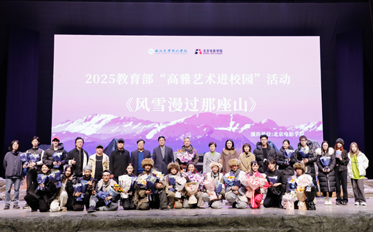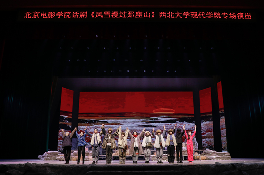 11月6日,教育部“高雅藝術進校園”2025年系列活動走進西北大學現(xiàn)代學院,在學校文體館展演了由北京電影學院精心排練的大型紅色話劇《風雪漫過那座山》。西北大學現(xiàn)代學院董事長劉家全等學校領導,著名演員趙思源、梁麗等嘉賓及陜西師范大學、長安大學、西北大學、西安外國語大學、西安翻譯學院、西安外事學院等校師生代表上千人觀看了演出。