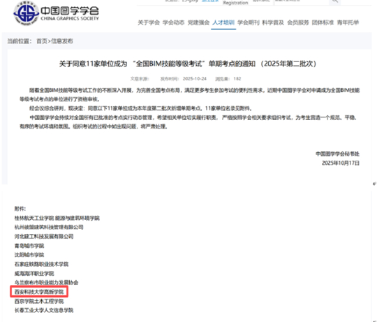 | 錨定數(shù)智轉(zhuǎn)型 賦能人才培育——西安科技大學(xué)高新學(xué)院成功獲批“全國BIM技能等級考試”考點(diǎn) |