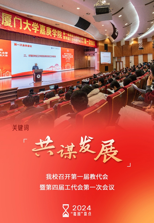 2024年是校主陳嘉庚先生誕辰150周年,以嘉庚先生名字命名的嘉庚學(xué)院邁入了21歲。這一年,21歲的“嘉”以更加堅定的步伐,秉承陳嘉庚先生的教育理念,不斷追求卓越,開拓創(chuàng)新。從凝心聚力的主題學(xué)習(xí),到共謀發(fā)展的教代會;從收獲頗豐的教研成果,到“嘉”績耀眼的競賽成績;從不斷進步的高校排名,到持續(xù)拓展的對外交流;從實習(xí)就業(yè)的深化開展,到服務(wù)地方的深入實踐……每一步都凝聚著“嘉”人的智慧與汗水。年終歲首,讓我們以10個年度關(guān)鍵詞為線索,共同回望這一年來“嘉”的每一步堅實步伐和每一個閃耀瞬間。