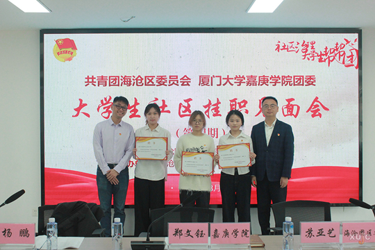 為深化校地協(xié)作,向社區(qū)注入青春活力,3月26日上午,廈門大學(xué)嘉庚學(xué)院聯(lián)合廈門市海滄團(tuán)區(qū)委開展“海滄區(qū)社區(qū)治理大學(xué)生幫幫團(tuán)”項目合作暨廈門大學(xué)嘉庚學(xué)院第四期大學(xué)生職業(yè)體驗見面會。