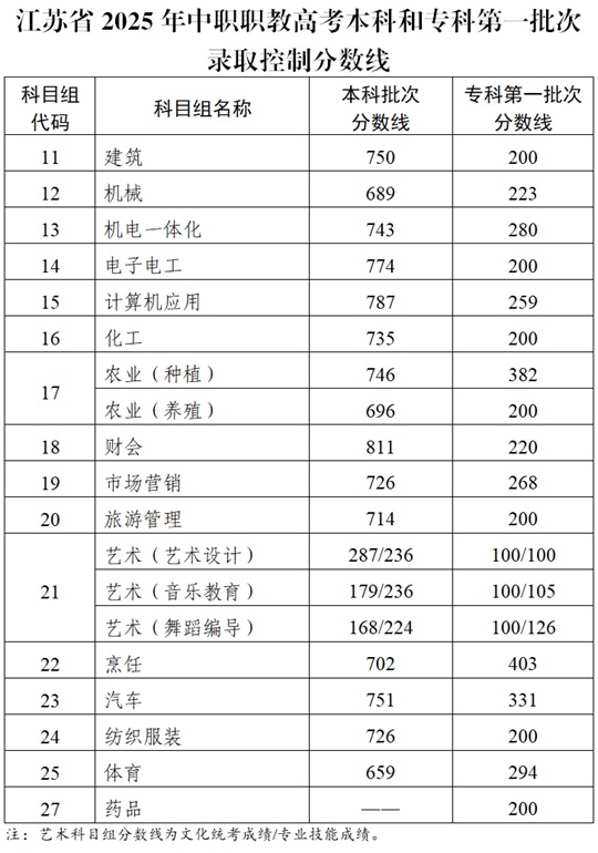 | 江蘇省公布2025年中職職教高考本科和?频谝慌武浫】刂品謹(shù)線 |