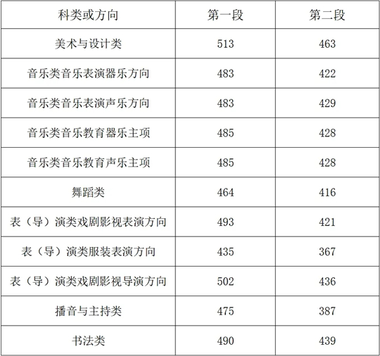 2.藝術(shù)類文化成績(jī)控制分?jǐn)?shù)線