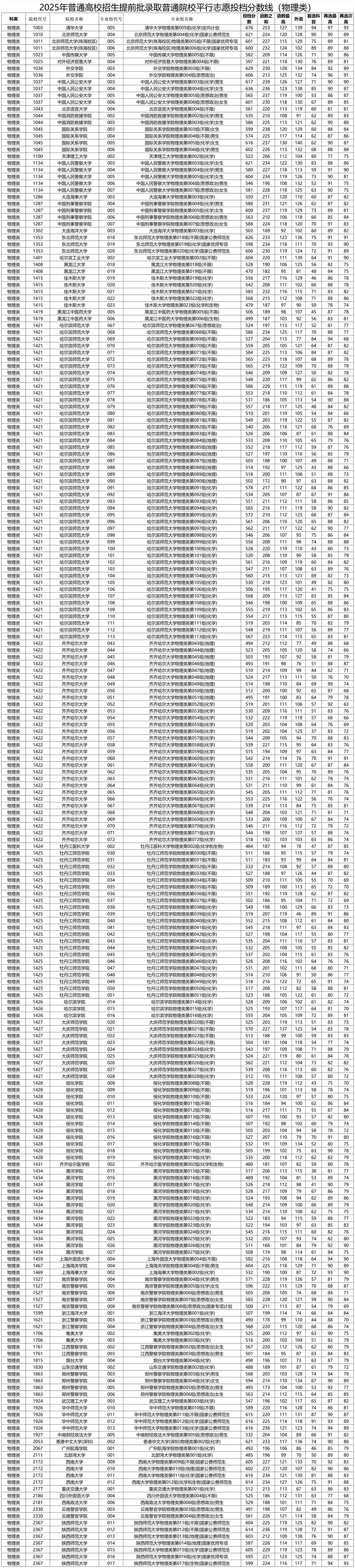 1.2025年普通高校招生提前批錄取普通院校平行志愿投檔分數(shù)線(物理類)(點擊查看)