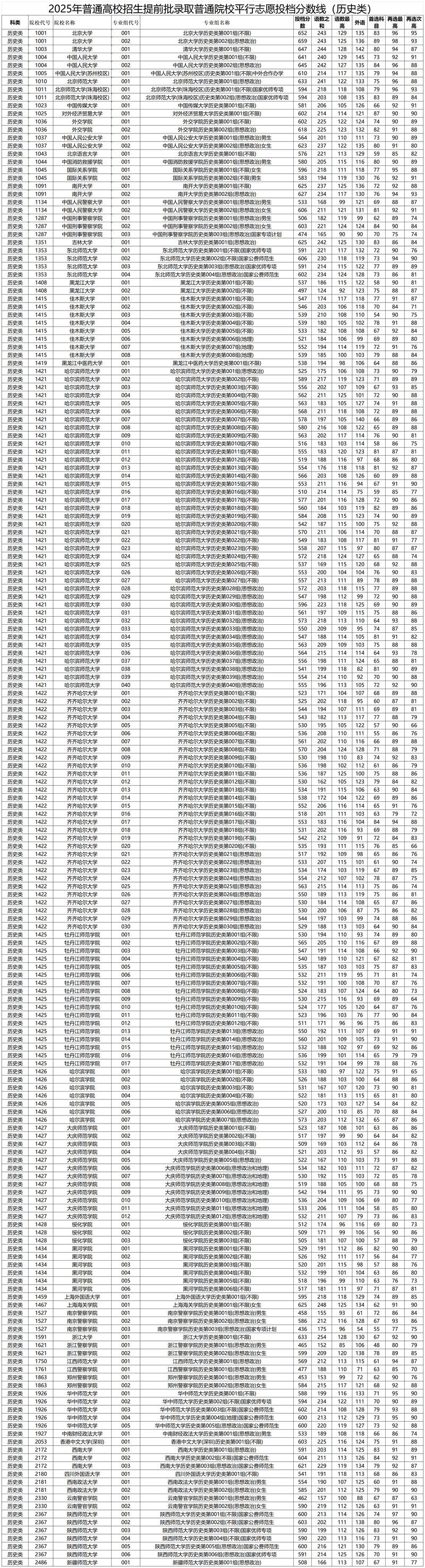 2.2025年普通高校招生提前批錄取普通院校平行志愿投檔分數(shù)線(歷史類)(點擊查看)