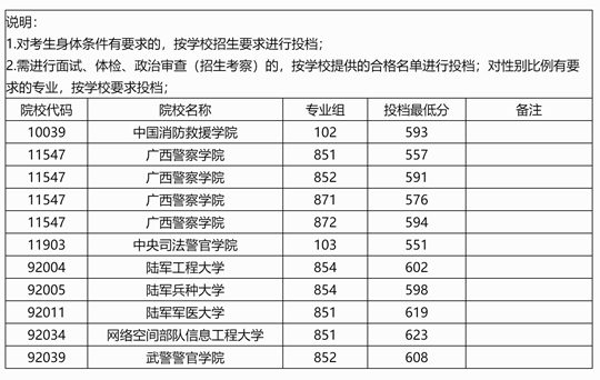 | 廣西:2025年本科提前批其他二類院校專業(yè)組第一次征集投檔最低分數(shù)線 |