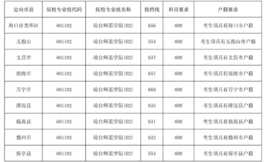 | 2025年瓊臺(tái)師范學(xué)院小學(xué)鄉(xiāng)村教師定向公培生(小學(xué)科學(xué)教育)及地方優(yōu)師專項(xiàng)計(jì)劃第一志愿第一輪投檔分?jǐn)?shù)線 |