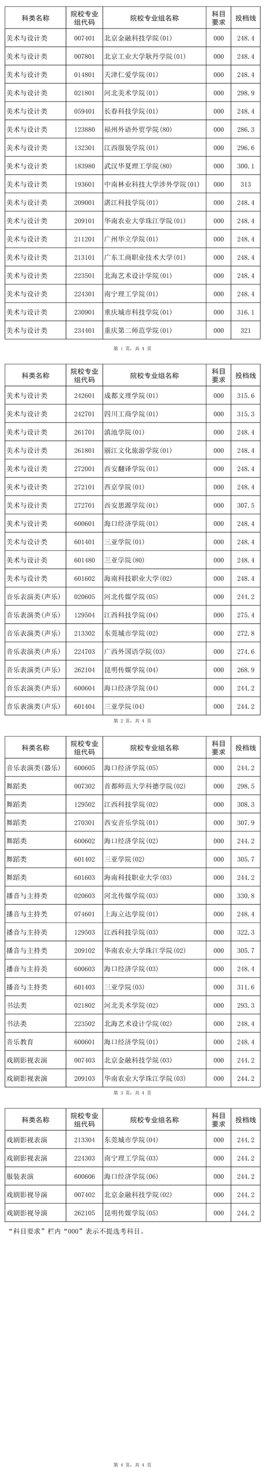 | 2025年海南省普通高校招生錄取本科提前批藝術(shù)類(lèi)院校專(zhuān)業(yè)組征集志愿平行投檔線 |