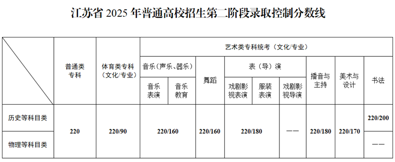 江蘇省2025年普通高校招生第二階段錄取控制分?jǐn)?shù)線