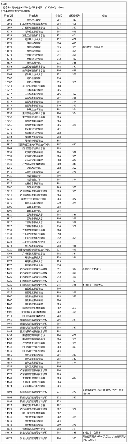 2025年高職高專提前批藝術類院校專業(yè)組投檔最低分數線(首選物理科目組)