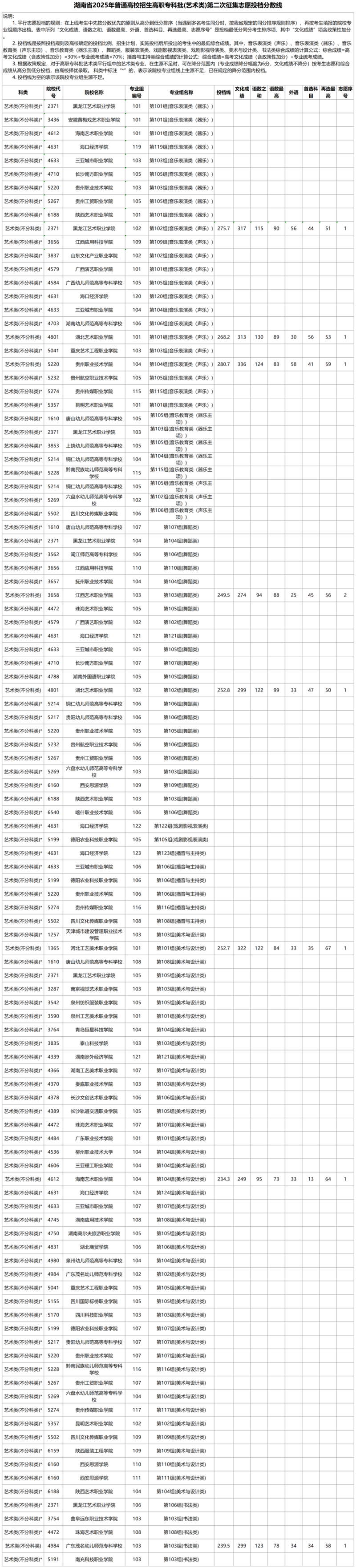 | 湖南省2025年普通高校招生高職?婆ㄋ囆g(shù)類)第二次征集志愿投檔分數(shù)線 |