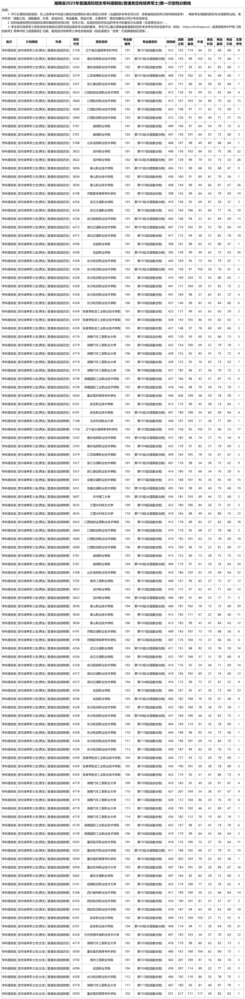 | 湖南省2025年普通高校招生專科提前批(普通類定向培養(yǎng)軍士)第一次投檔分?jǐn)?shù)線 |