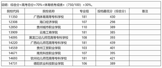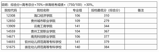 2025年高職高專提前批體育類院校專業(yè)組第二次征集投檔最低分數(shù)線(首選物理科目組)