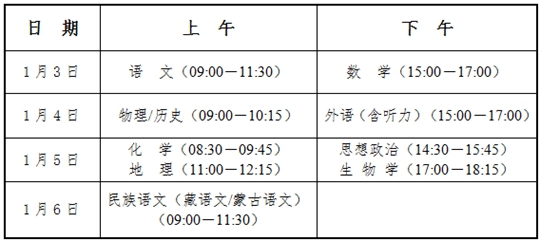 3.考試時間為2025年1月3日至6日,具體安排如下: