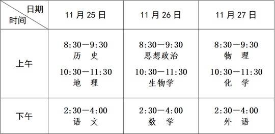 2025年下半年河北省普通高中學(xué)業(yè)水平合格性考試筆試科目考試將于11月25日-27日進(jìn)行,各科具體時間安排如下: