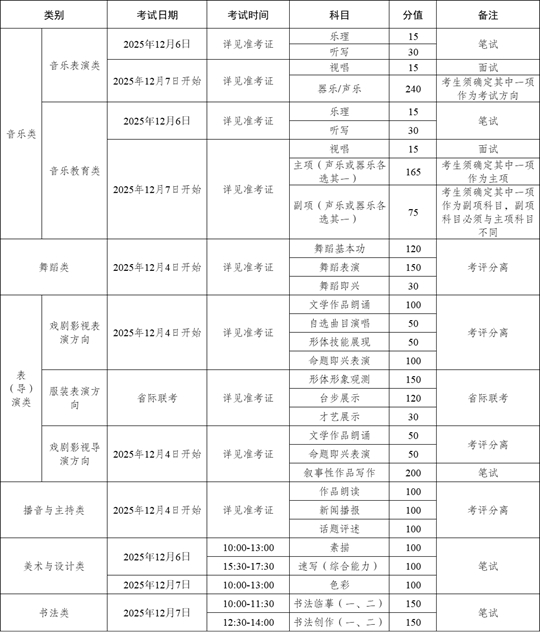 自治區(qū)2026年普通高等學(xué)校招生藝術(shù)類(lèi)專(zhuān)業(yè)統(tǒng)考科目及時(shí)間表