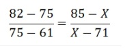 第一步,將該科目所有考生原始分從高到低進行排序,按照規(guī)定的等級比例該考生被劃定為B等級,該科目B等級原始分區(qū)間為61-82(僅是示例,實際各科目各等級原始分區(qū)間不固定),即Y1、Y2分別為61和82;