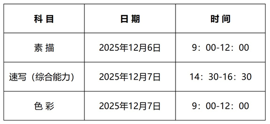 2026年河北省普通高校招生美術(shù)與設(shè)計(jì)類專業(yè)統(tǒng)考將于2025年12月6日-12月7日舉行,F(xiàn)將有關(guān)注意事項(xiàng)提示如下。