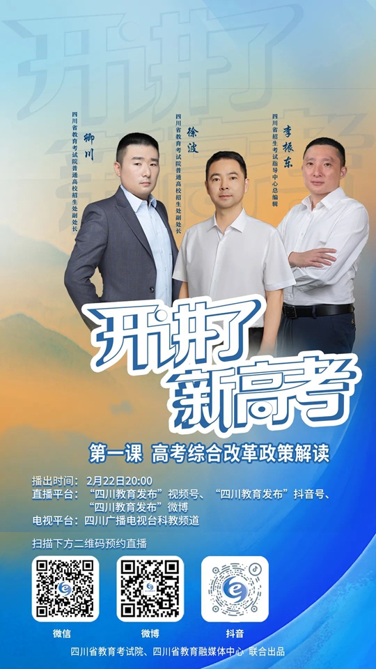 | 四川:《開(kāi)講了新高考》首場(chǎng)直播來(lái)了!分?jǐn)?shù)怎么計(jì)?志愿怎么填?專家?guī)憬馕?.. |