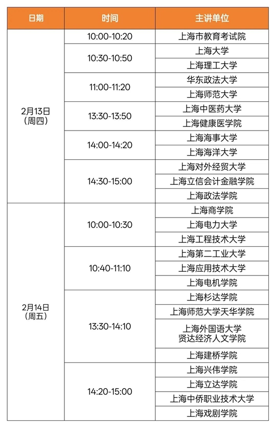 | 2月13日-14日,上海2025年春招政策解讀及志愿填報(bào)直播活動(dòng)將舉行 |