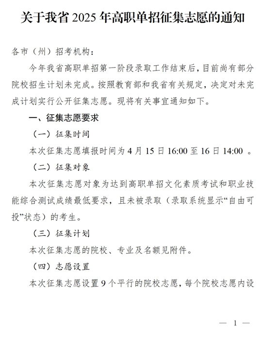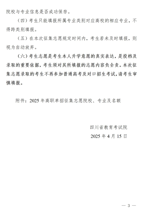 四川:關(guān)于我省2025年高職單招征集志愿的通知