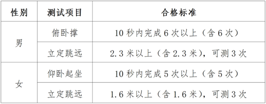 四、面試體檢體能測(cè)試項(xiàng)目及合格標(biāo)準(zhǔn)