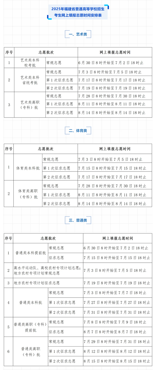 | 2025年福建省普通高等學(xué)校招生考生網(wǎng)上填報志愿時間安排表 |