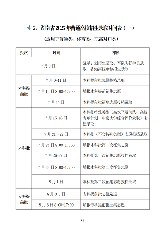 各批次錄取時間及征集志愿填報時間與普通類招生一致。