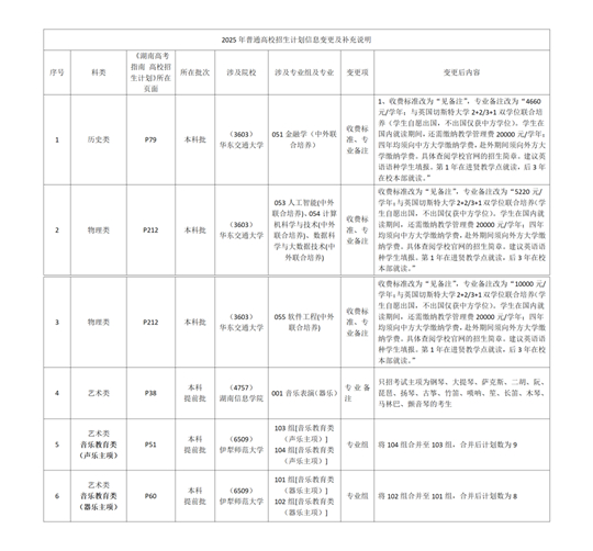 | 2025年湖南省普通高校招生計(jì)劃信息變更及補(bǔ)充說明(6月30日更新) |
