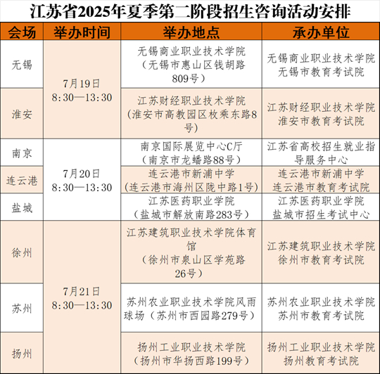 | 江蘇省招就中心主辦的江蘇省2025年夏季第二階段招生咨詢(xún)活動(dòng)安排 |