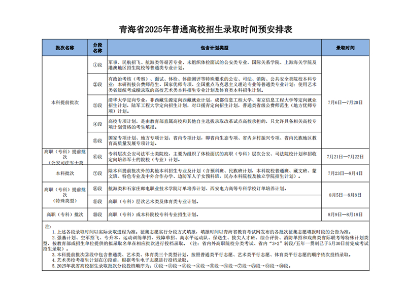 | 青海省2025年普通高校招生錄取時(shí)間預(yù)安排 |