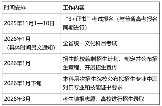 各院校2026年“3+證書”考試招生計(jì)劃原則上不少于2025年。