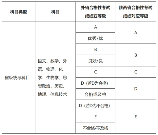 3.成績轉(zhuǎn)換辦法。我省高中學考合格考省級統(tǒng)考科目成績以A、B、C、D、E五個等級呈現(xiàn),E等為不合格。外省成績轉(zhuǎn)換為我省成績的規(guī)則如下: