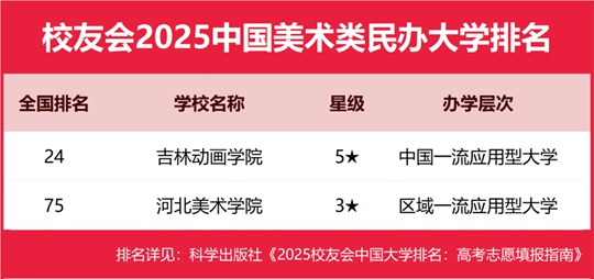 吉林動畫學(xué)院位列2025中國美術(shù)類民辦大學(xué)排名榜首,河北美術(shù)學(xué)院第二