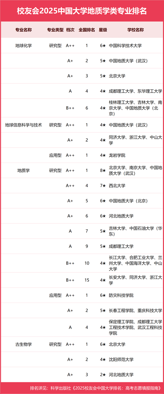 校友會(huì)2025中國大學(xué)地質(zhì)學(xué)類專業(yè)排名(研究型)