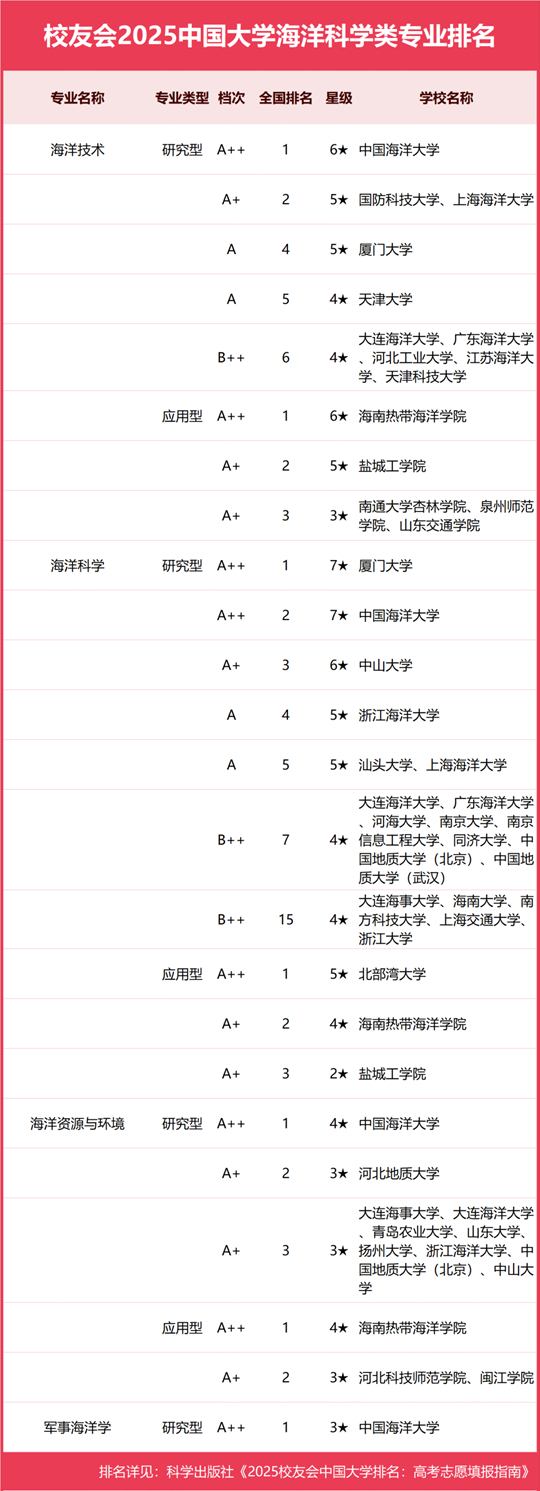 校友會2025中國大學(xué)海洋科學(xué)類專業(yè)排名(應(yīng)用型)