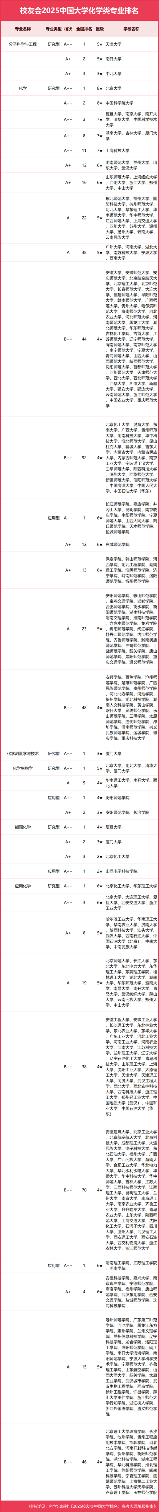 校友會(huì)2025中國大學(xué)化學(xué)類專業(yè)排名(研究型)