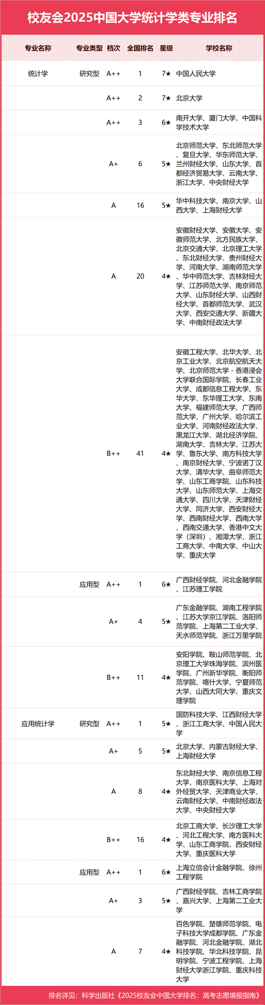 校友會2025中國大學統(tǒng)計學類專業(yè)排名(研究型)