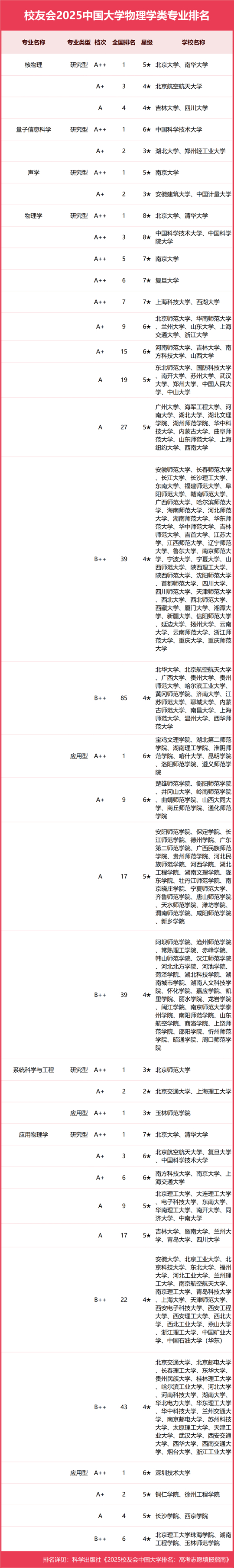 校友會2025中國大學(xué)物理學(xué)類專業(yè)排名(應(yīng)用型)