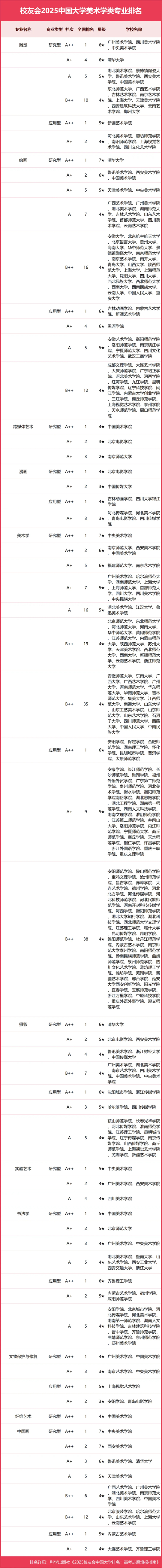 校友會2025中國大學(xué)美術(shù)學(xué)類專業(yè)排名(應(yīng)用型)