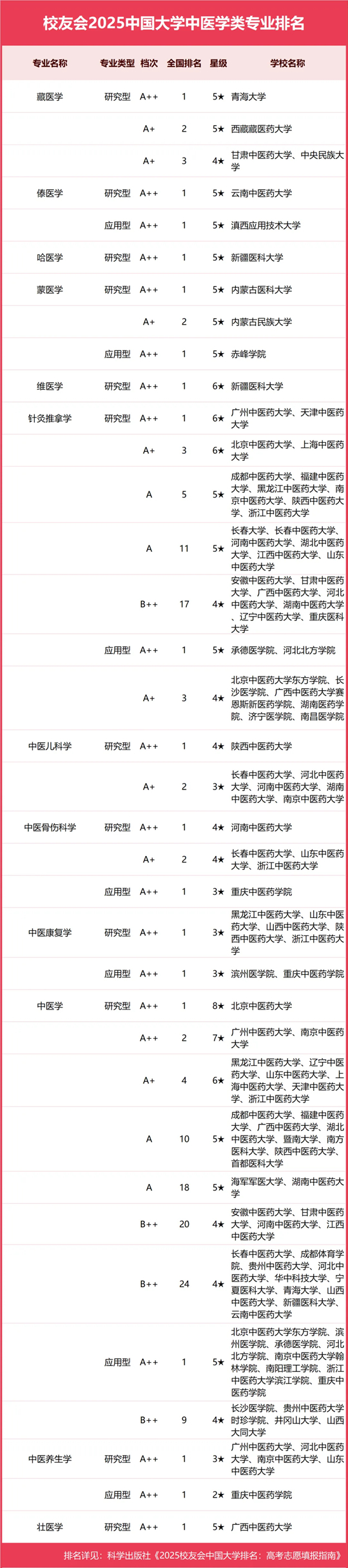 校友會2025中國大學(xué)中醫(yī)學(xué)類專業(yè)排名(研究型)