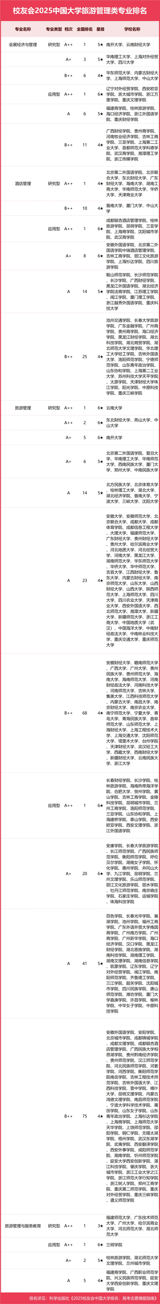 校友會2025中國大學旅游管理類專業(yè)排名(應用型)