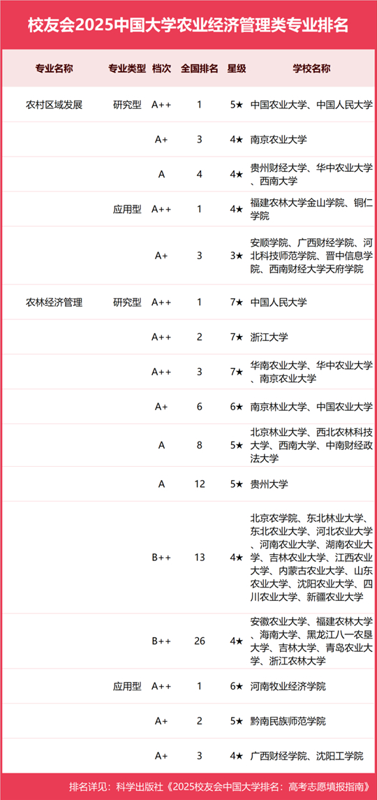 校友會2025中國大學(xué)農(nóng)業(yè)經(jīng)濟(jì)管理類專業(yè)排名(研究型)