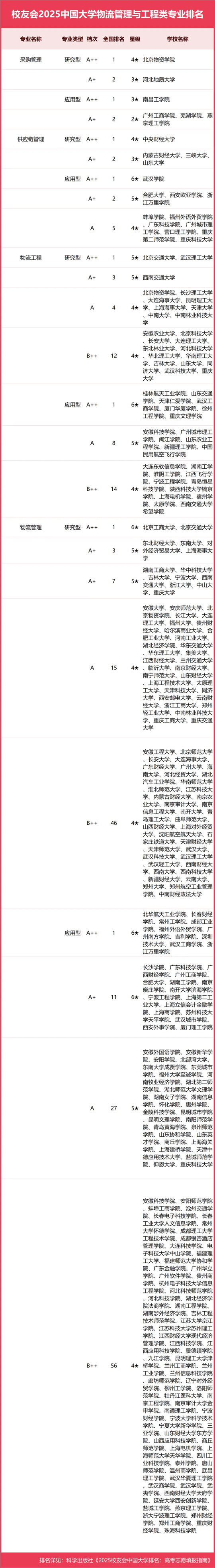 校友會(huì)2025中國大學(xué)物流管理與工程類專業(yè)排名(研究型)